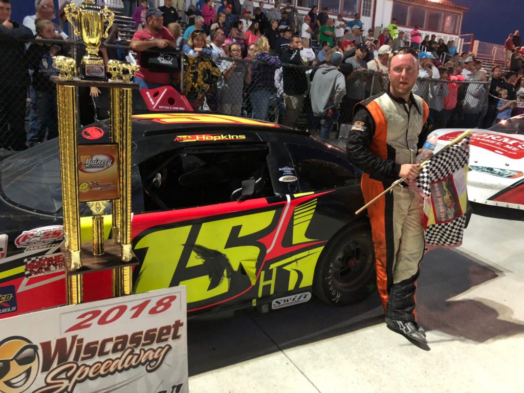 The Hermon driver hadn’t won a race all season long, and he saw what he thought was his best chance of ending that drought disappear when Garrett Hall stormed by him less than 30 laps from the finish Sunday evening at Wiscasset Speedway. But when the caution came out for the final time five laps from the checkered flag, it gave Hopkins the shot at redemption he craved.