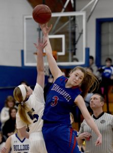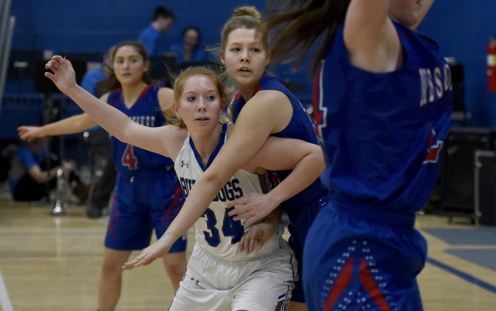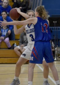 On Monday, the Bulldogs’ defensive focus was on Gabrielle Wener, Messalonskee’s high-scoring junior. The goal was to keep Wener under 10 points, Chesley said. In the first game between these teams (a 53-33 Lawrence win on Dec. 11, the Bulldogs held Wener to six points. With a Bulldog defender, usually Miranda Lambert or Keagan Alley, face-guarding Wener throughout the game, Wener finished with 16 points, 10 coming in the fourth quarter.