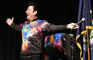 Donning an Elvis-like hairstyle and black clothing with a distinctive neon paint spatter pattern — which he may soon turn into his own clothing line — Retro Bill made use of a number of props and humorous personas onstage Tuesday in Fairfield. At the core of his presentation, though, was the message that kindness matters.