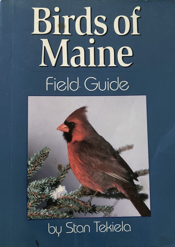 There is a great pocket-sized book called Birds of Maine Field Guide by Stan Tekiela that is the perfect first field guide for anyone. Tekiela is an excellent photographer and has put together these small guides to birds in at least 46 regions, plus dozens of others on mammals, reptiles, trees, etc. However, with that breadth comes a lack of depth, and the book is limited to only 119 species, organized by color. These are nice features for beginners – better to start with the 119 very common species than the confusion of 400-plus that can be seen in Maine. But if you spot that 120th at your feeder, you are out of luck. Organizing by color also sounds helpful, but it can be a misguided approach to identifying birds. It is better to look at size and shape, especially the bill, to figure out which family a bird is in and narrow it down to the species from there, rather than to look at all the yellow birds and try to identify a bird that way. I suspect many people outgrow Tekiela’s guide quickly, so also ordering a more complete field guide like The Sibley Field Guide to Birds of Eastern North America, or National Geographic Field Guide to the Birds of Eastern North America, is a wise choice.