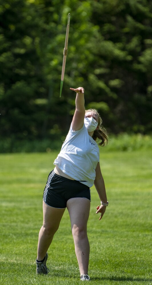Skowhegan’s Grace Greenlaw works out during practice Thursday in Skowhegan. Michael G. Seamans/Morning Sentinel