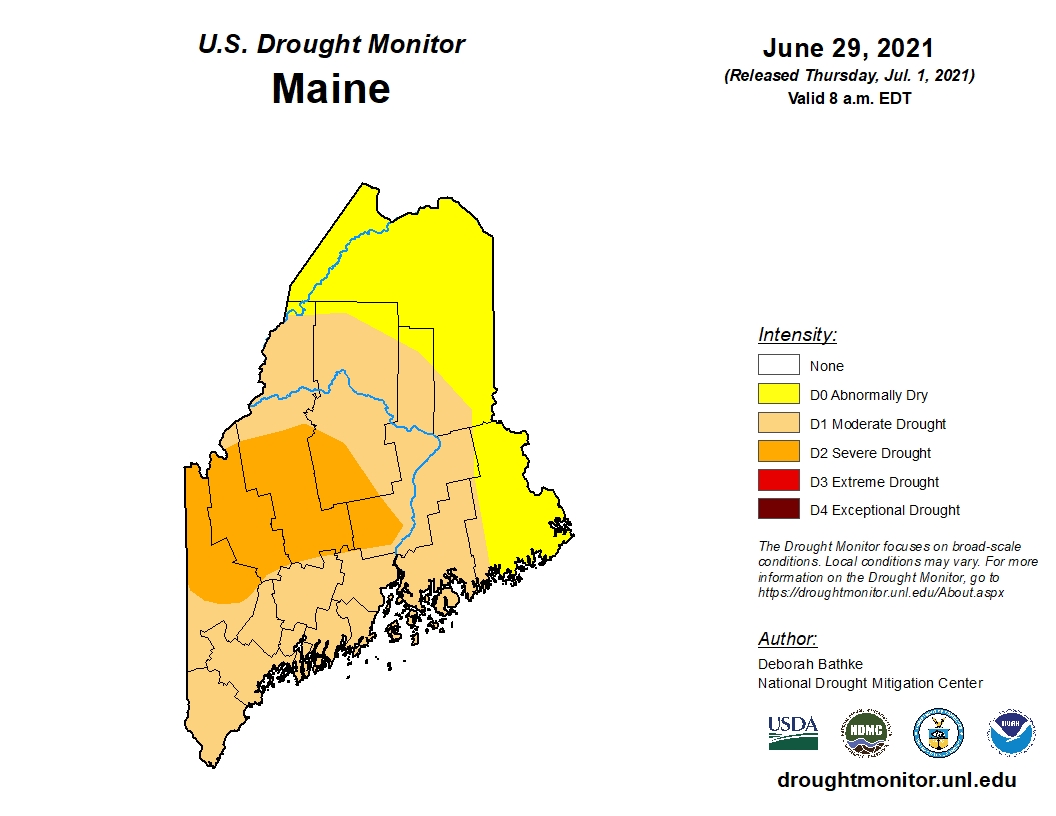 The entire state is abnormally dry and most of it is facing a moderate drought, including Androscoggin County and the entire coastal region from Kittery to Mount Desert Island.