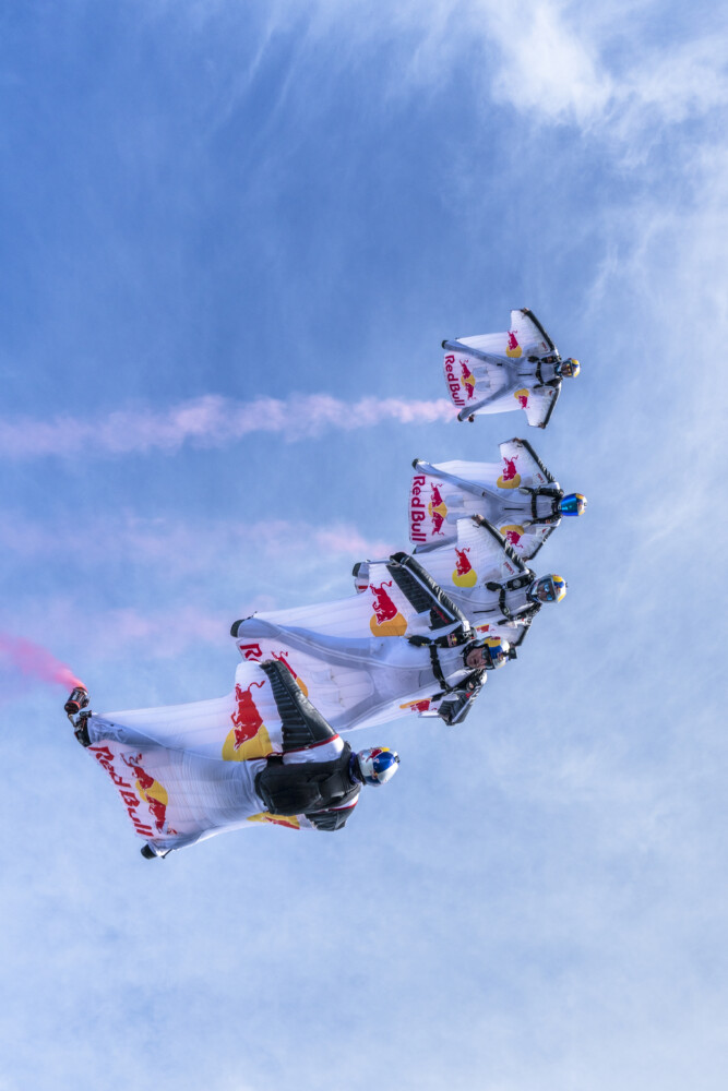 The Red Bull Air Force team skydives at their 2021 Training Camp in Los Alamos, California, USA on 5 April, 2021. Michael Clark