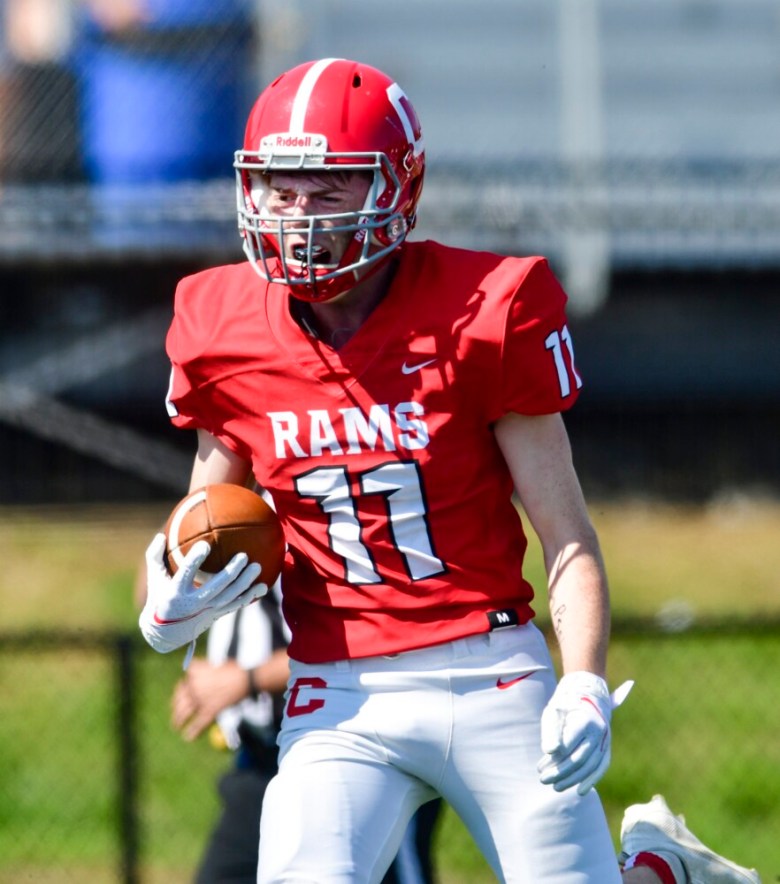 It didn’t appear the Rams would face such a dilemma again when they fell behind Skowhegan 35-21 Saturday, but they fought back and took over at their own 29-yard line down 35-28 with 5:08 to play. A pair of passes from Presti to Dennett — who had a massive game with nine catches for 166 yards and three touchdowns — sandwiched around a 16-yard Coulombe run brought the ball to the Skowhegan 32, and seven plays later Cony faced a 4th-and-1 from the 8.