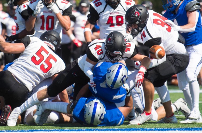 Mistakes on back-to-back possessions in the first half ultimately proved a crippling blow for Colby (0-1). Up 3-0 in the second quarter, an errant snap on a punt attempt on fourth down gave Wesleyan (1-0) the ball on the Colby 2-yard line. Two plays later, Cardinals running back Charlie McPhee plunged into the end zone from a yard out. An extra point by Andrew Iferenta gave Wesleyan a 7-3 lead.