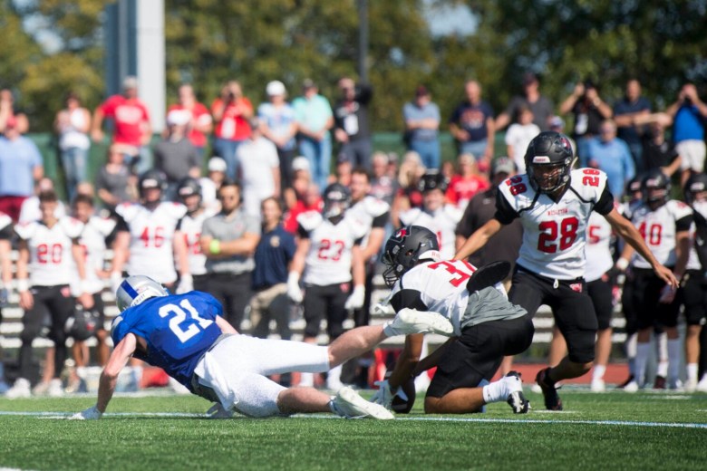 “We’ve got a great group of freshmen that have come in,” Marrocco said. “We’re trying to be a tough football team and I think we showed that today. We’re a tough football team. We’re going to try to hit you hard with the running game and then hit you hard on defense, special teams. See what we can do. The effort is always there, and that’s the No. 1 thing. The effort is 10o percent there, the toughness is 100 percent there. We can only go up from there.”