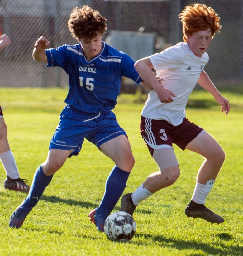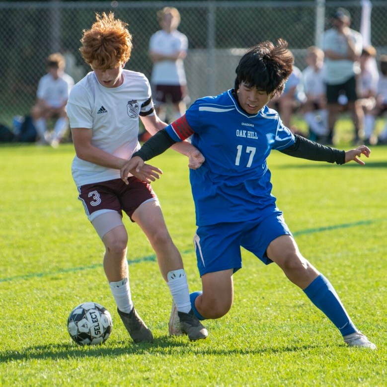 Monmouth went into halftime up 2-0, but saw its lead cut in half in the 51st minute when Oak Hill’s Ethan Vattaso brought the ball up, outran the Monmouth defense, and then beat keeper Hunter Frost (six saves) for a goal. The Mustangs weren’t happy, and calls to “wake up” could be heard among the players.