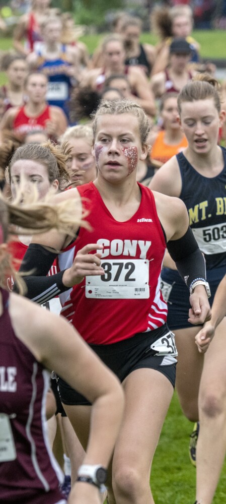 Camden Hills’ Jenna VanRyn (21:09.5) and Cassie Middleton (21:52.0) were third and fifth, respectively, while Mt. Blue’s Emma Charles was fourth at 21:30.7.