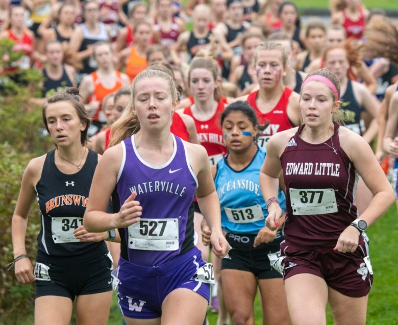 Kirk finished just behind and was one of several local runners faring well, including Winslow’s Addison Pellerin (third, 22:02.0), Maranacook’s Lina Martinez-Nocito (fourth, 22:14.9), Waterville’s Beatrice Beale Tate (fifth, 22:17.5) and Gardiner’s Ashlyn Poulin (sixth, 22:29.9).
