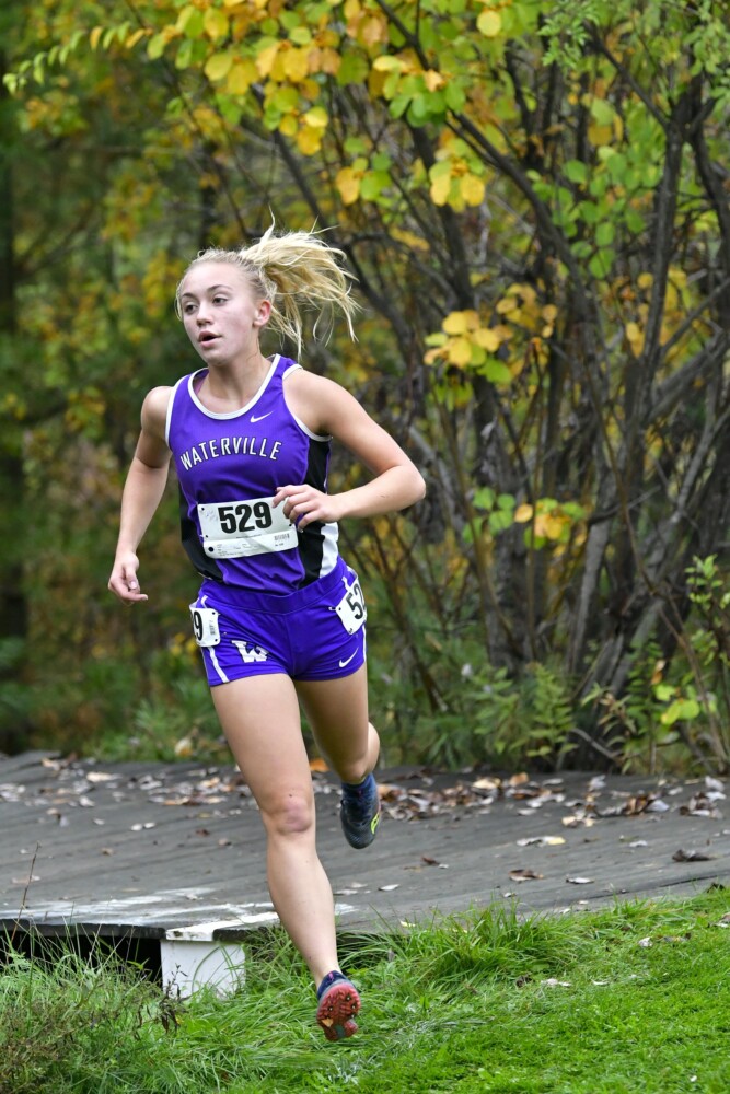 Waterville’s Abby Williams took first in the B girls race, completing the hilly course in 21:21.9 to edge Cony’s Grace Kirk (21:45.1).