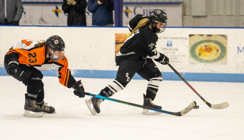 “We always preached never giving up,” St. Dom’s head coach Paul Gosselin said. “That’s the kind of team we have. We’ve had good third periods in the past. We said, ‘Look, we’re playing well, we just haven’t had some puck luck. (The Black Tigers) have a good goalie, she’s excellent. We just had to get some shots on net and one by one, it happened.”