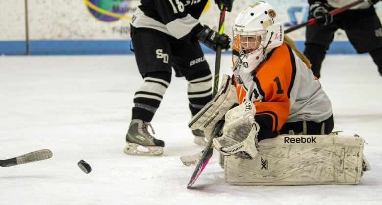 Roy cut the lead to 3-2 with 11:23 left in the third period to start the St. Dom’s comeback, taking a shot from the corner that found its way through the legs of Black Tigers goalie Emma Michaud. With five minutes remaining, Duffy found the puck in a scrum in front of the net and knocked it past Michaud to tie the game 3-3.