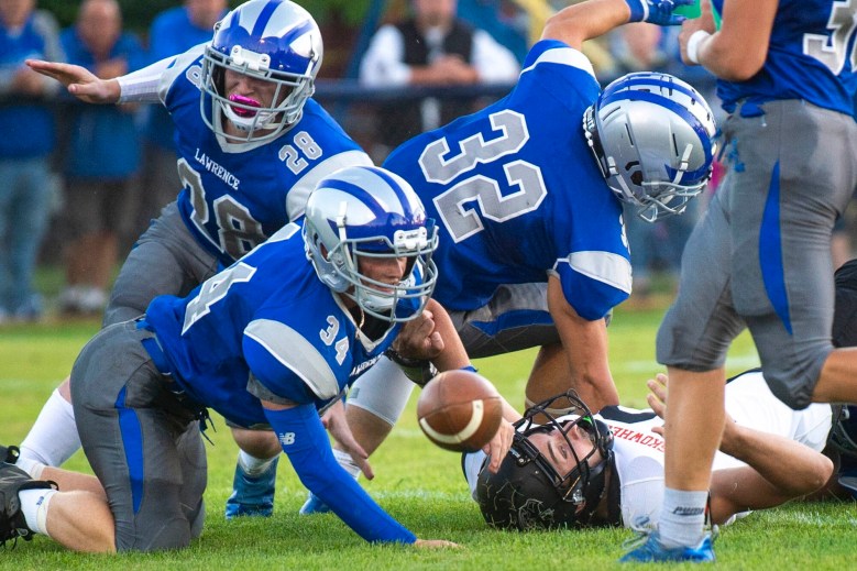 Skowhegan then forced Lawrence (0-1) to punt but would fumble on the next play, and the Bulldogs capitalized as Hamlin threw a touchdown pass to make it 14-7 with three minutes left in the opening quarter. That score stifled the River Hawks’ momentum a little bit as Lawrence got the ball back and drove to the red zone.