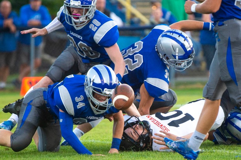 Skowhegan then forced Lawrence (0-1) to punt but would fumble on the next play, and the Bulldogs capitalized as Hamlin threw a touchdown pass to make it 14-7 with three minutes left in the opening quarter. That score stifled the River Hawks’ momentum a little bit as Lawrence got the ball back and drove to the red zone.