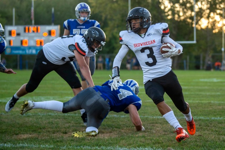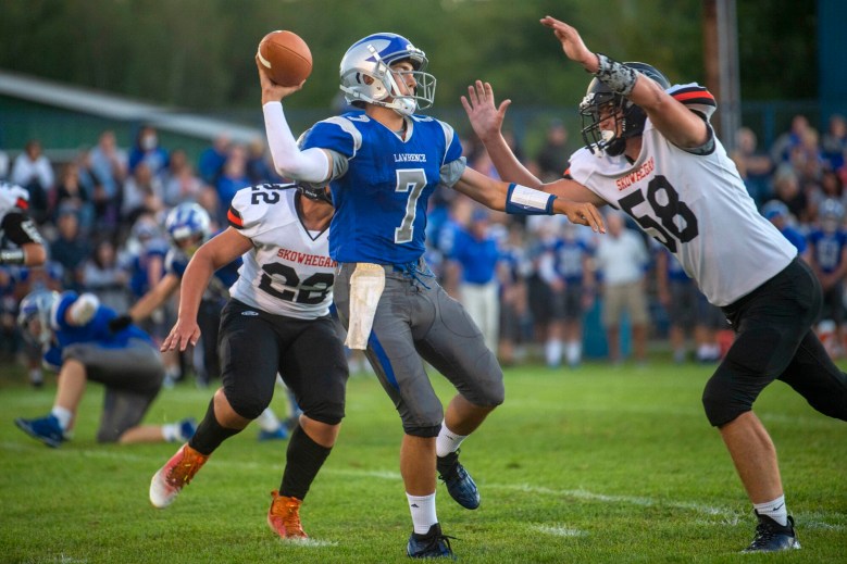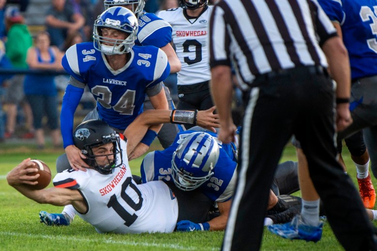 Savage’s interception of Lawrence’s Michael Hamlin on the opening play and 15-yard touchdown run two plays later gave Skowhegan (1-0) a 6-0 lead after just 51 seconds. After forcing a turnover on downs on the ensuing drive, the River Hawks made it 14-0 on the next play after Tyler Annis sprinted 56 yards for a touchdown.