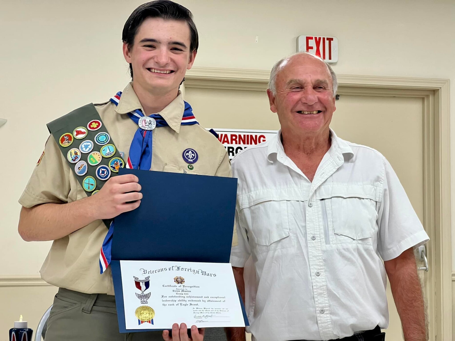 He also received certificates of recognition from both the American Legion and the VFW, but it was his Scoutmaster, Garth Smith, who presented him with his Eagle Scout certificate.