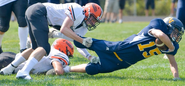 The loss of standout running back Matt Quirion to injury, who ran for nearly 200 yards in Winslow’s season-opening victory over Old Town, was certainly no help. Without Quirion’s speed, the Black Raiders lacked a much-needed dimension in the run game, a weakness Medomak was able to exploit.