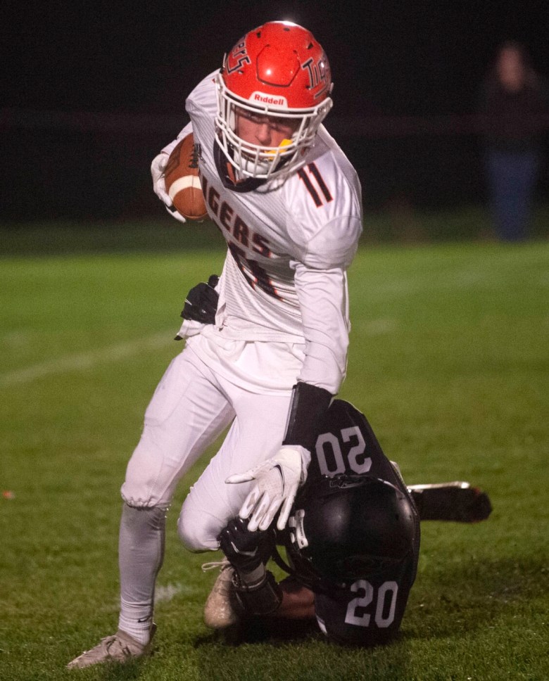 Skowhegan immediately forced a three-and-out from Gardiner to end the half, and the River Hawks then made it 26-6 to open the second as quarterback Adam Savage found McCray for a 24-yard score. After forcing another punt from the Tigers, Skowhegan put up the game’s final points as Brenden Dunlap found Tyler Annis on a 27-yard trick play with 4:23 left in the third quarter.