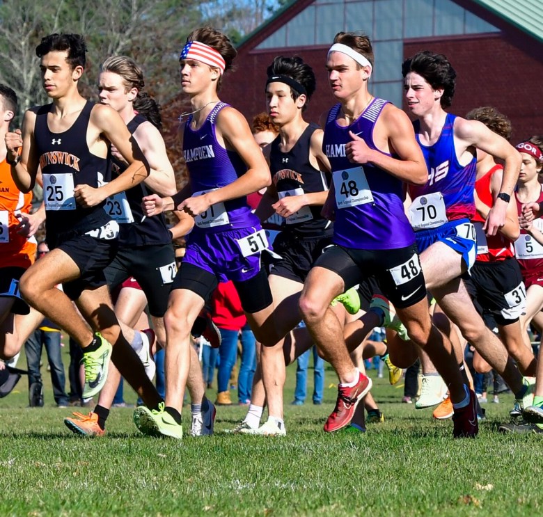 Harrison Shain of Hampden Academy (16:39.36) finished third overall in the A North boys race. Hampden Academy (41 points) won the A North boys title, followed by Brunswick (72 points) and Camden Hills (116 points).