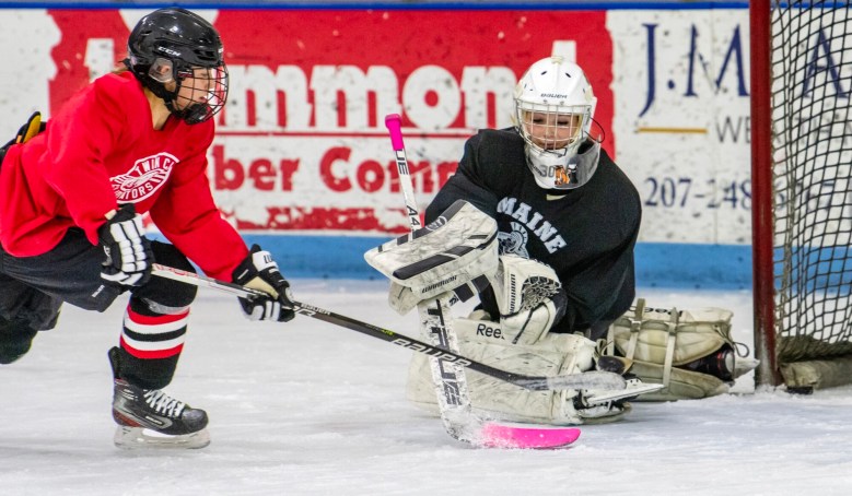 HALLOWELL — The Black Tigers girls hockey co-operative team held its first practice Tuesday with plenty of optimism, despite a contractual impasse between the Maine Principals’ Association and the Maine chapter of the National Ice Hockey Officials Association that has jeopardized the season.