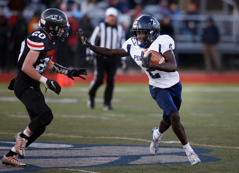 South top-seed Portland (8-4) responded immediately as Kennedy Charles scored on a 44-yard run that cut Skowhegan’s lead to 7-6. Although the Bulldogs pinned the River Hawks deep on the ensuing kickoff, Savage would find Annis for an 85-yard pass to the 1-yard line before running it in himself to make it 14-6.