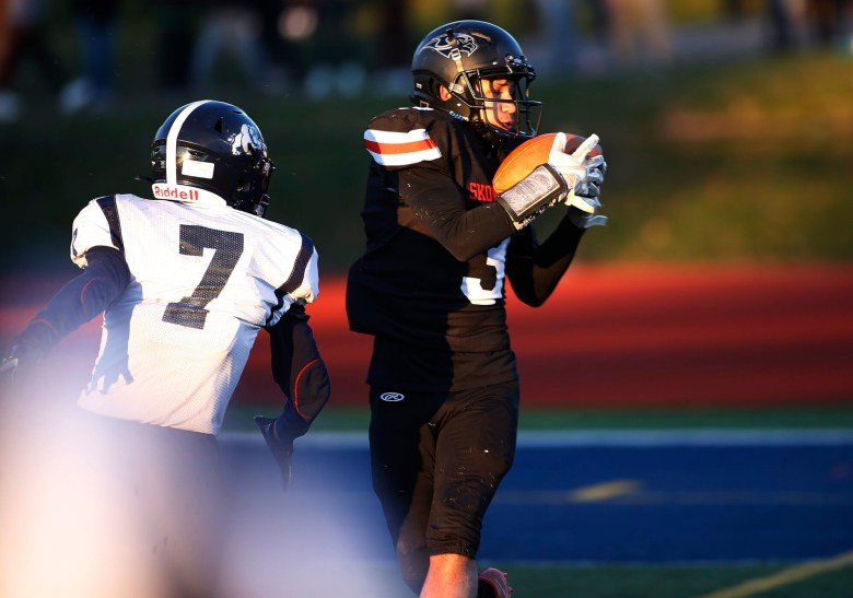 “We knew they weren’t going to give up. … We had to settle down and take it one play at a time and one stop at a time,” Skowhegan senior lineman Collin LePage said. “We just said, ‘Keep going, keep going; we’ll get it, we’ll get it.’ We got the one play we needed, and it was game over from there.”