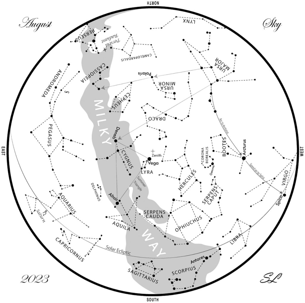 The major highlight of this month is a favorable showing of the Perseid Meteor shower. You can expect more than one meteor per minute from a dark sky site since the moon will be a thin waning crescent rising at 1:30 a.m. on Aug. 12 and 2:30 a.m. on Aug. 13. It will be new on Aug. 16, a few days after the Perseids. Caused by Comet Swift-Tuttle, which orbits the sun every 133 years and is in an eleven to one orbital resonance with Jupiter, the Perseids are usually the second best shower of each year right behind the Dec. 13 Geminids.