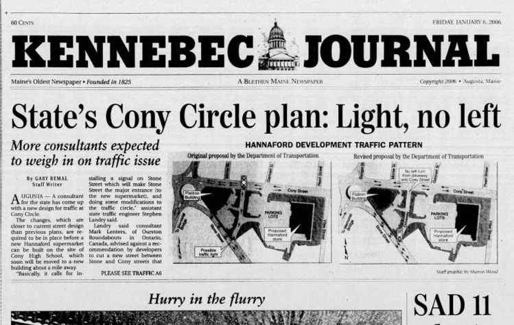 Jan. 6, 2006: Consultant comes up new traffic design for Cony Circle in Augusta, SAD 11 adopts new busing plan, and new $400,000 grant goes toward suicide prevention for students in Knox, Sagadahoc and Piscataquis counties