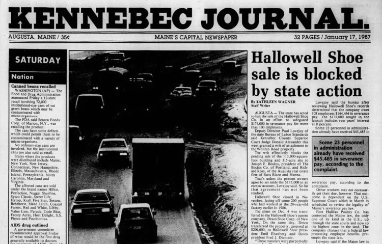 Jan. 17, 1987: Maine acts to block sale of Hallowell Shoe Co. in effort to safeguard severance pay for over 100 workers, some 72,000 cans of green beans recalled nationwide, and get ready for another snow storm tomorrow