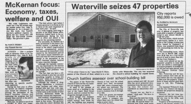 Dec. 28, 1987: City of Waterville seizes over 47 properties last week after residents failed to pay taxes, and Gov. John McKernan Jr. focusing on economy, taxes, welfare and OUI in next legislative session