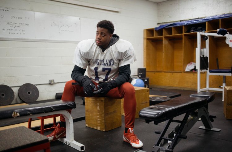 Kapongo’s introduction to football came as a Portland High sophomore in 2016. It had been one year since Kapongo, the youngest of 12 children, immigrated with his parents and several siblings from Kinshasa, the capital city of the war-torn country and home to roughly 12 million people. Kapongo didn’t know anything about football other than it looked like fun and fit his 6-foot-4, 240-pound 16-year-old body.