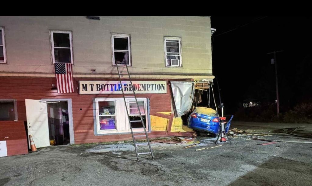 A car drove into the M.T. Bottle Redemption business at 1445 Lisbon St. early Friday. (Courtesy of Dominic Colson)
