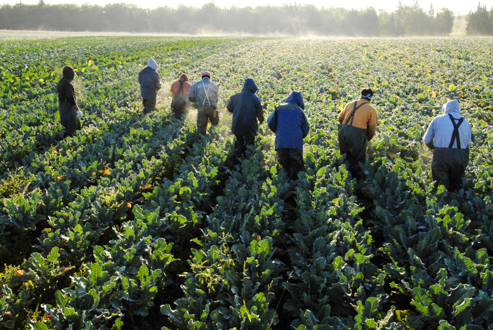 Farmworkers, mostly from Mexico and El Salvador, cut broccoli stalks at Smith’s Farm in 2006 near Fort Fairfield in Aroostook County. (John Ewing/Staff Photographer)