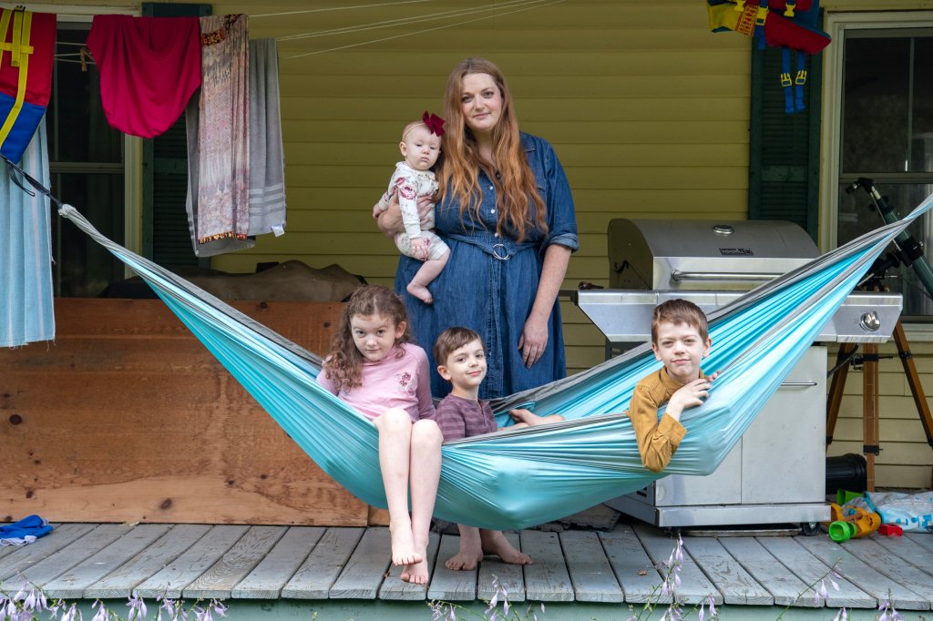 Sarah Eller, of Hartford, has had to deal with long wait times for her children to receive dental work that requires general anesthesia. Pictured with Eller are Millie, left, Jonah, center, and Elias in the hammock, and Elyse, held by her mom. (Daryn Slover/Staff Photographer)