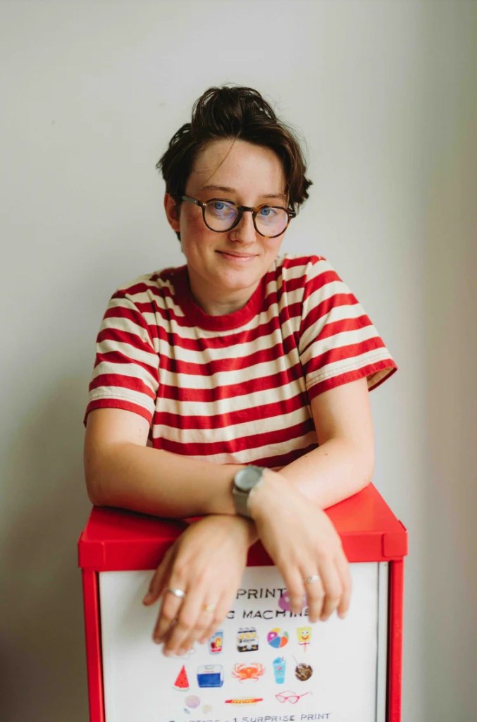 Ana Inciardi is a relief printmaker and the creator of the Mini Print Vending Machine. She’s from Brooklyn, New York, and is based in Portland, Maine. Food has always inspired her art as it connects her to the people she loves most: her friends, her Italian American family, and her wife, Addison, an organic vegetable farmer. Accessibility was her goal when developing the Mini Print Vending Machines, which price each mini print at one dollar. Now, her machines can be found all across the country, with more being added each week. Brands Ana has partnered with include: HBO, The Whitney Museum, Books Are Magic, Rachel Antonoff, The Boston ICA—the list goes on. She feels very fortunate to have built a career and life around the celebration of food, eating, accessibility, and community.