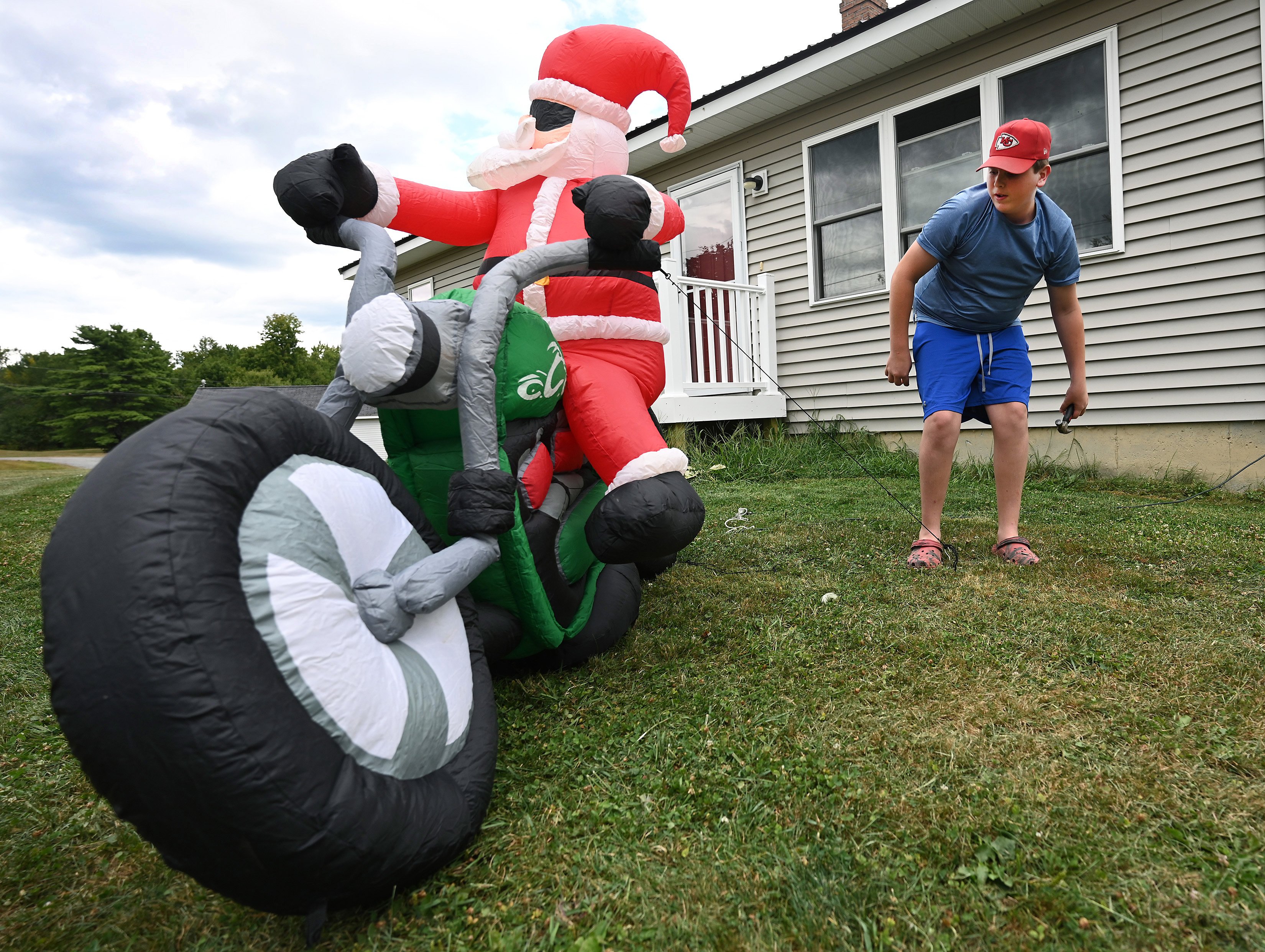 Winslow quarterback Liem Fortin lands after getting hit by Maranacook’s Chance Leblanc, who lost helmet on play, during opening football game of the 2025 football season Sept. 6 at Winslow High School’s Poulin Field. (Joe Phelan/Staff Photographer)Gov. Janet Mills holds up a souvenir brick from the recently demolished Bob-In tavern Sept. 8 while speaking to a Rotary Club lunch in Waterville. The bar and other Front Street buildings were recently demolished to make way for the Head of Falls Village project, a 63-unit housing development overlooking the Kennebec River in downtown Waterville. (Joe Phelan/Staff Photographer)An American flag flies at half staff in front of the Lady Of Wisdom statue Sept. 11 at the Maine State House in Augusta. Gov. Janet Mills ordered flags lowered in Maine to honor Charlie Kirk after he was assassinated Wednesday in Utah. (Joe Phelan/Staff Photographer)Pam Wadleigh carries crab apples she picked from the tree Aug. 27 at her home in Belgrade. Wadleigh said she would cook, strain and freeze the juice, then later use the juice to make jelly for her family. (Rich Abrahamson/Staff Photographer)Everett Wadleigh, 13, stakes down an inflatable Santa Claus riding a Harley Davidson motorcycle Aug. 27 in the yard of his home in Belgrade. Wadleigh had just purchased it for $20 on Marketplace. He has collected 120 inflatables and he got his first one, The Grinch, when he was 3 years old. (Rich Abrahamson/Staff Photographer)Dressed in clown costumes, members of the Trott Family lead the Clinton Lions Agricultural Fair parade Sept. 6 in downtown Clinton. A banner on their vehicle says that family members have been “clowning around since 1966.” (Joe Phelan/Staff Photographer)Lisbon’s Melanie Simmons, left, passes the ball as Oak Hill’s Marina Smith defends during a field hockey game at Oak Hill High School in Wales on Sept. 10. (Rich Abrahamson/Staff Photographer)Ryleigh Coughlin, a student at Messalonskee High School and volunteer, gets a bee painted on her cheek at the Maine State Beekeepers Association annual Bee Fest at Viles Arboretum Sept. 7 in Augusta. (Anna Chadwick/Staff Photographer)Mt. Blue’s Morgan Hersey (1), left, and Brooklyn Webber (33) hug after a goal is scored Sept. 10 against Skowhegan in Skowhegan. (Anna Chadwick/Staff Photographer)Mary Pono puts the finishing touches on a 9/11 flag memorial Sept. 8 near the Skowhegan Area High School entrance. The memorial was set up by 13 classes of fourth and fifth graders from Margaret Chase Smith Community School in Skowhegan. (Anna Chadwick/Staff Photographer)Mary Pono walks by the 9/11 flag memorial outside of Skowhegan Area High School on Sept. 8. Each year, Margaret Chase Smith School students set up the memorial in front of their school, but with construction still taking place there, the memorial was added at the high school this year. (Anna Chadwick/Staff Photographer)