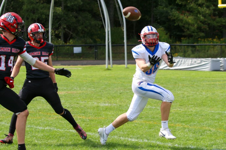 The Windjammers were backed up to their own 8-yard line after a holding call, but Schwalm converted a fourth-and-1 with his legs before using his left arm to find Beveridge down the left sideline for a 31-yard diving catch. The Windjammers then went hurry up, and Schwalm found Beveridge again on a crossing route that the junior took 35 yards for a score that gave Camden Hills an 18-14 lead.