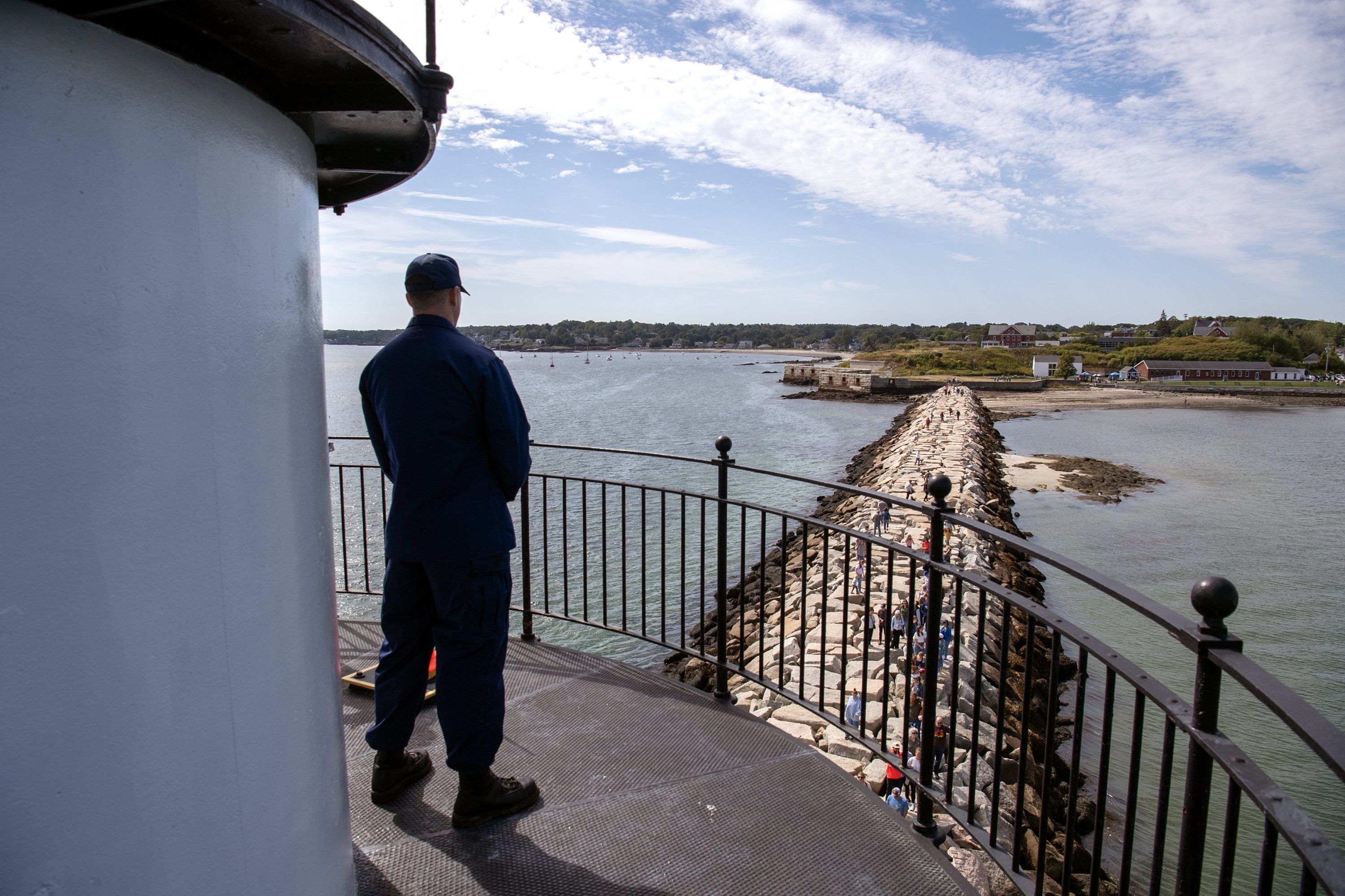 A late summer breeze blew salty and cool off the coast of Casco Bay as crowds of visitors lined up to enter the Portland Breakwater Lighthouse on Saturday morning.