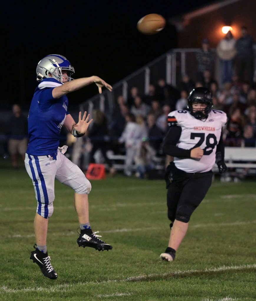 The way Skowhegan managed its quarterback situation proved fruitful last week. Lancaster completed 12 of 16 passes for 189 yards and a touchdown in the River Hawks’ 14-13 win at Lawrence, and Aubin’s presence at tight end paid off as he used his 225-pound frame to break two tackles on the way to a 34-yard touchdown reception that was ultimately the winning score.