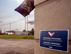 Little signs that declare “Welcome, Canadians! Maine welcomes our Canadian friends!” in English and French populate the windows of border-community businesses.