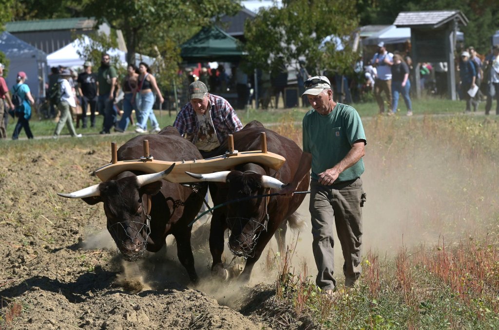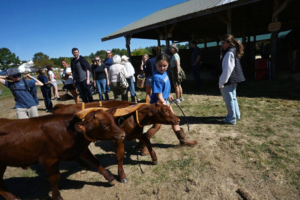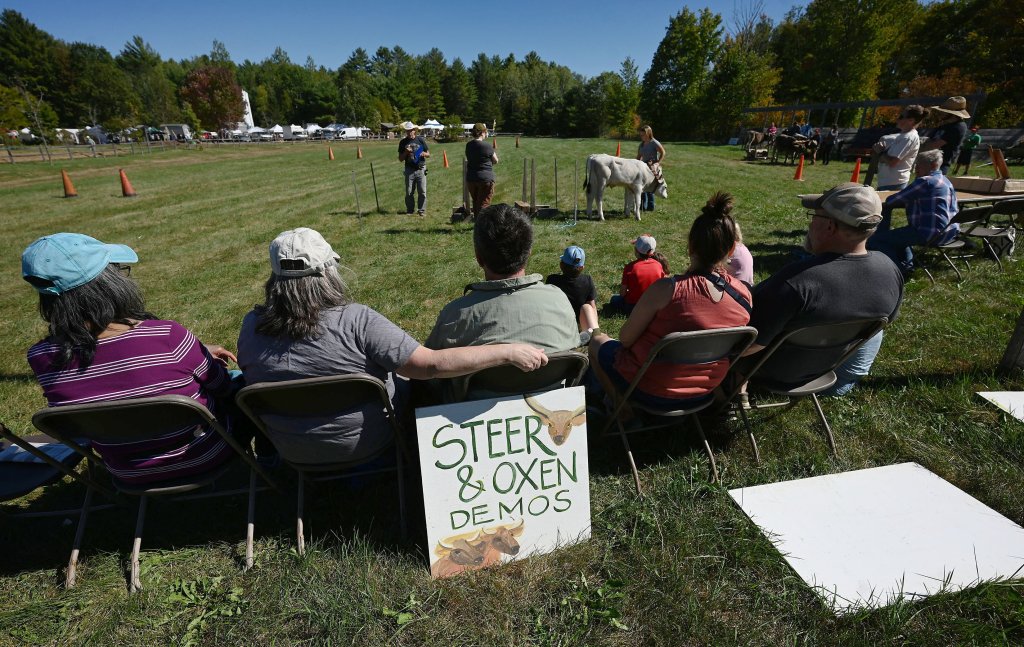 Spectators watch steer and oxen demonstrations Friday during the Maine Organic Farmers and Gardeners Association Common Ground Country Fair in Unity. (Rich Abrahamson/Staff Photographer)Anastasia Gallant of Bangor awaits friends before walking to the Maine Organic Farmers and Gardeners Association Common Ground Country Fair Friday in Unity. (Rich Abrahamson/Staff Photographer)Earland Luce, center, of Appleton, and Mark Winslow of Yarmouth direct a team of three-year-old steers during a plowing demonstration Friday at the Maine Organic Farmers and Gardeners Association Common Ground Country Fair in Unity. The fair runs through Sunday. (Rich Abrahamson/Staff Photographer)Carol Ann Gifford waits for customers as she works at a food stand Friday during the Maine Organic Farmers and Gardeners Association Common Ground Country Fair in Unity. (Rich Abrahamson/Staff Photographer)Delaney Morgan, 10, of Morgan Family Farms of Woodstock, leads Simba and Scar before showing the steers Friday during Maine Organic Farmers and Gardeners Association Common Ground Country Fair in Unity. The fair runs through Sunday. (Rich Abrahamson/Staff Photographer)Fairgoers stream through the Maine Organic Farmers and Gardeners Association Common Ground Country Fair Friday in Unity. The fair runs through Sunday. (Rich Abrahamson/Staff Photographer)Joshua Cianciolo, 3, reacts after he and other children fed hay to steers Friday during the Maine Organic Farmers and Gardeners Association Common Ground Country Fair in Unity. The fair runs through Sunday. (Rich Abrahamson/Staff Photographer)