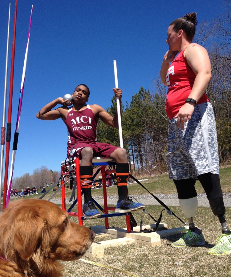 Christy Gardner demonstrates Paralympic throwing events at Husky Throwdown