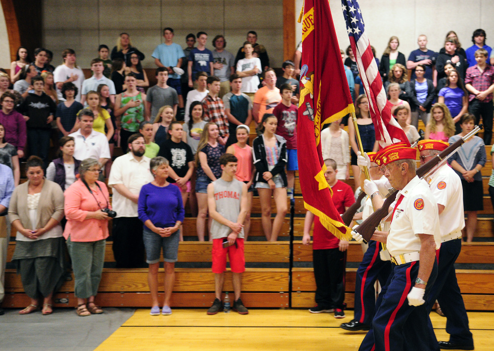 Family members of Harvey Madore and Joseph Berry, two Maine soldiers killed in action during the conflict, spoke to students and shared memories of their relative.