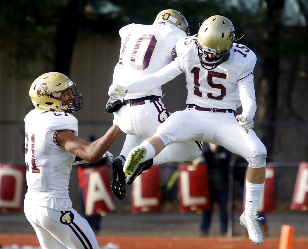 Thornton Academy’s Austin McCrum, Portland High’s Joe Esposito and Brunswick’s Will Bessey are in line for the award that goes to Maine’s top senior in high school football.