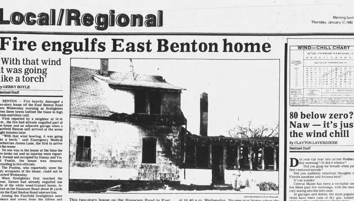 Jan. 17, 1985: Was the wind chill -80 degrees this morning in central Maine? Also, fire engulfs East Benton home, and Waterville’s police chief has an opinion on state’s new noise law