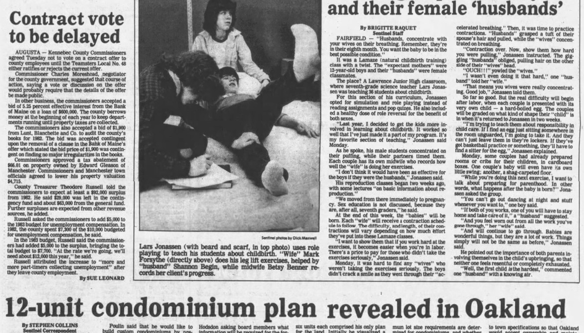 Jan. 19, 1983: 12-unit condominium plan in Oakland near Waterville Country Club revealed, Kennebec County jail money to be sought for repairs, and a Lamaze class in Fairfield with a twist