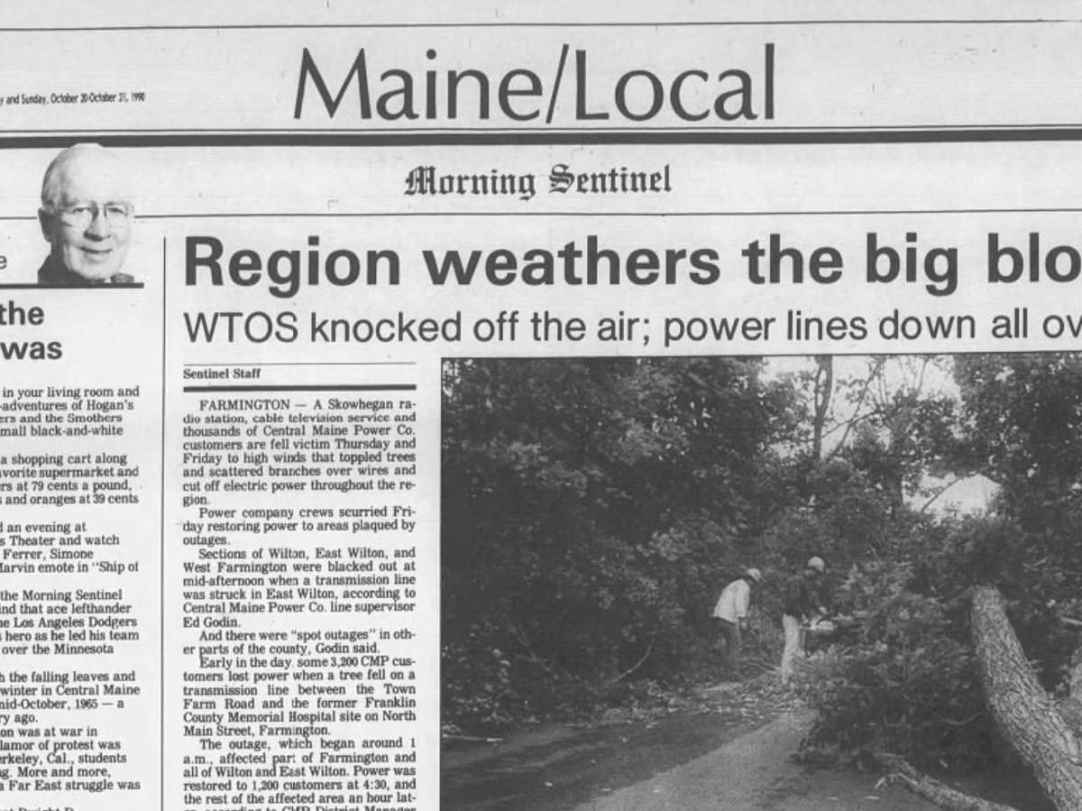 Oct. 20, 1990: Skowhegan radio station, cable services, and thousands of Central Maine Power customers without power due to high winds, and Skowhegan’s town manager receives Maine Municipal Association Award