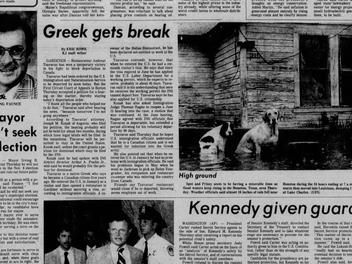 Sept. 21, 1979: Gardiner restaurant owner wins victory in fight to block his deportation, Gardiner mayor won’t seek re-election, and Spot & Prissy seek higher ground!