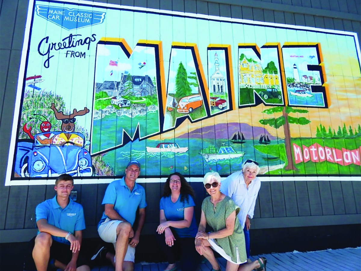 The ‘Greetings from Maine’ style billboard announces the Maine Classic Car Museum in Arundel.