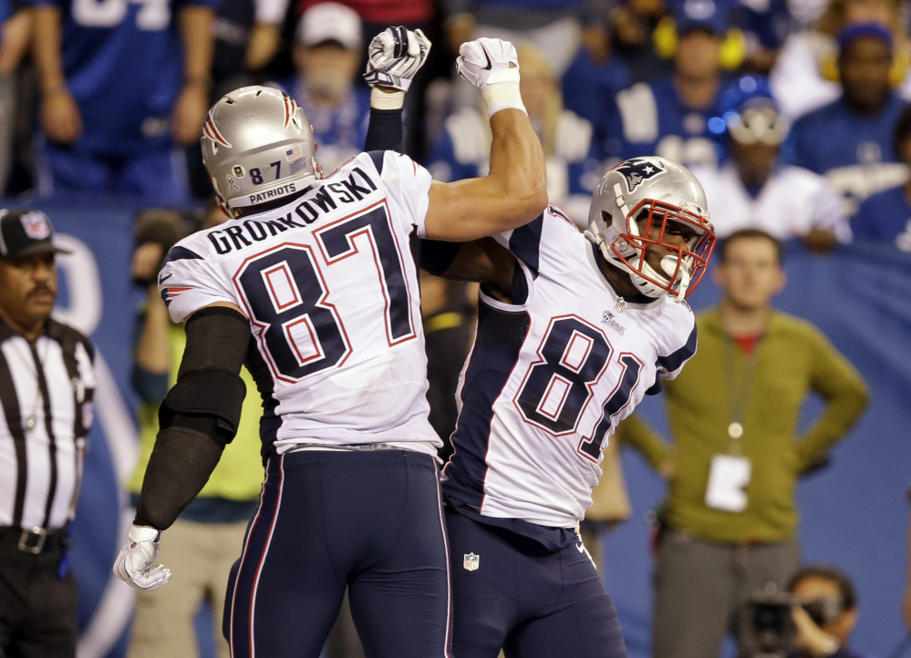 Jonas Gray sets a team record with four rushing touchdowns, and New England extends its winning streak to six games.